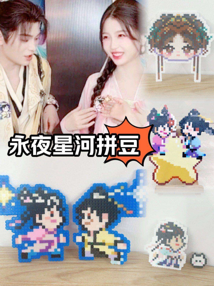 没想到,这一波操作直接让拼豆这种老物件重新焕发了新生。现在,打开社交平台,你会看到大量粉丝纷纷复刻剧中的凌妙妙慕声拼豆,有人把它做成钥匙扣,有人拼成手机壳,甚至还有人用几千颗拼豆拼出了两人剧中的经典镜头。线下手作店也开始迎来热潮。比如,北京三里屯的某家拼豆店,一年的拼豆套餐竟然能卖出1.5万份,年轻人排队体验这种爱豆同款浪漫。店里老板透露,以前拼豆只是小学生玩的东西,现在来体验的多是二十几岁的年轻姑娘,她们一边拼一边刷《永夜星河》的精彩片段,拼完后还要发个朋友圈,配文写上和禹兮欣欣一起拼出爱情的形状。这种现象,简直成了一种情感寄托。