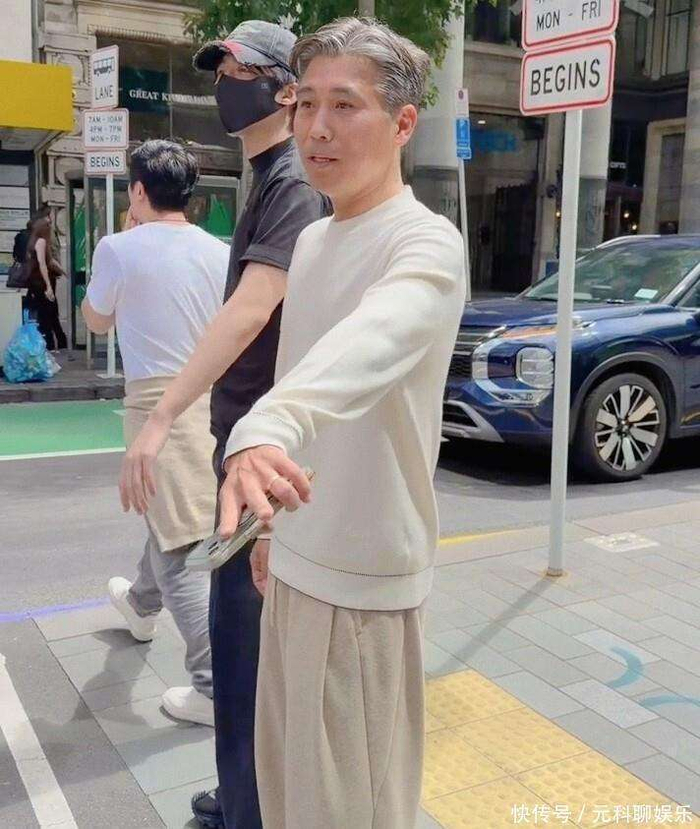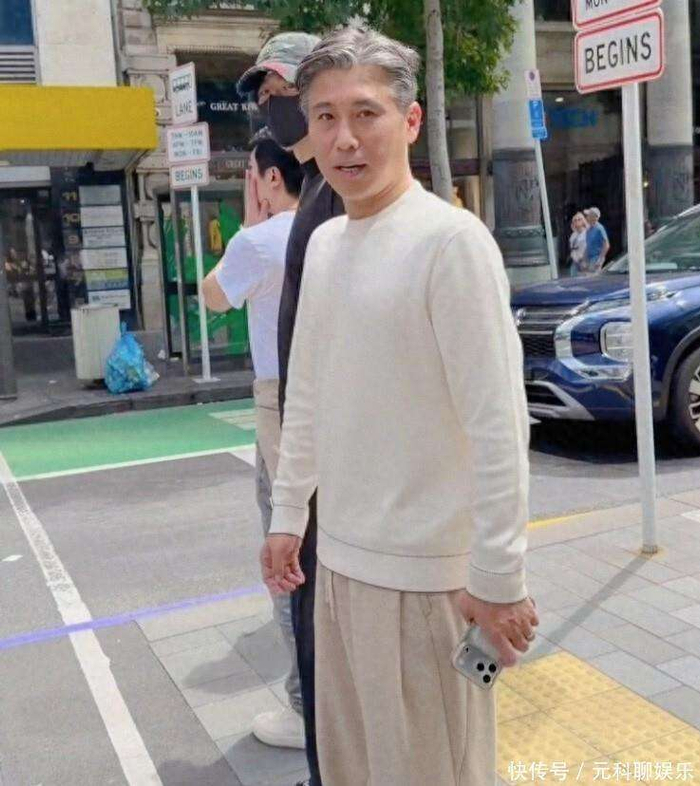 51岁李乃文新西兰街头照曝光!头发花白不染发,休闲打扮很松弛