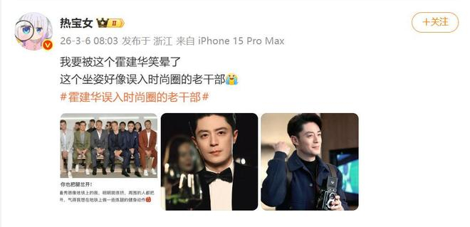 3月6日,霍建华在巴黎时装周上凭一套“端坐如钟”的看秀姿势,成功在网络上杀出重围。这位素来低调的演员,因为与周遭氛围格格不入的板正姿态,被网友精准调侃为“误入时尚圈的老干部”,瞬间引爆了一场关于明星反差萌的欢乐围观。