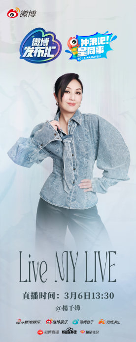 杨千嬅全新巡演"Live MY LIVE 1.0"的超前直播将于今日(2026年3月6日)13:30在微博独家上线,这是她首次以演唱会制作规格打造的直播活动。