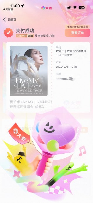 杨千嬅2026年"Live MY LIVE 1.0"世界巡回演唱会首站成都门票,以亲民票价点燃抢票狂潮,却因万人空巷的需求瞬间售罄,上演了一场"拼手速、拼运气"的硬仗。