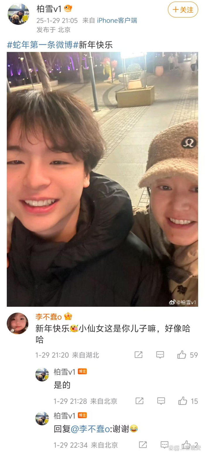 比较引人注目的是她的儿子,应该十四五岁,长得跟柏雪挺像的,柏雪又是一张不显年纪的娃娃脸,不知道还以为他俩是姐弟。