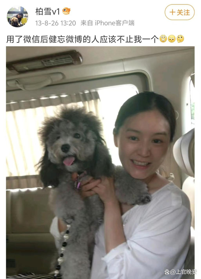之后找回账号密码的柏雪断断续续在微博上更新动态,为数不多的博文内容基本上都是晒狗狗的照片及和朋友的相聚,提到她个人和家人的信息少之又少。