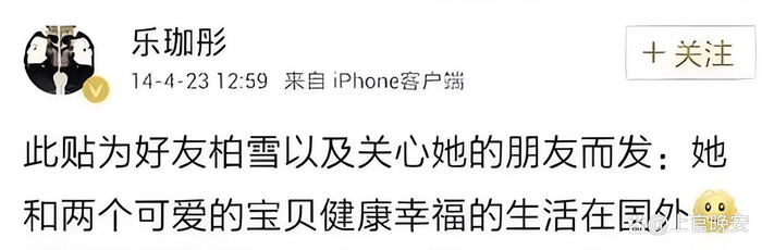 圈中好友《情深深雨濛濛》“梦萍”的扮演者乐珈彤也忍不住替柏雪发文澄清:她和两个可爱的宝贝健康幸福地生活在国外。