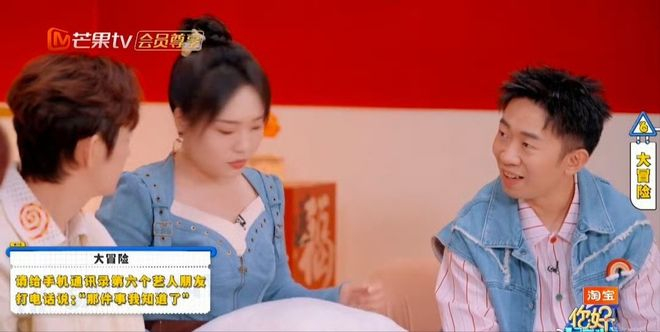 《你好星期六》特别企划,在游戏环节李雪琴需要完成给微信列表第六位艺人好友说“那件事我知道了”的大冒险,没想到杨紫就是第六位,于是李雪琴深呼一口气发出语音“铁子啊,我跟你说的那个事我知道了”身边的何炅、杨迪都觉得李雪琴的语气好真实,很容易炸出什么!