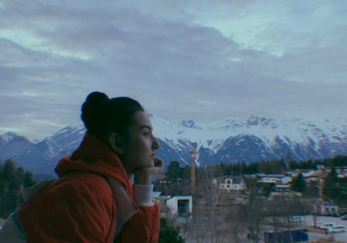 照片中侧脸的宋祖儿五官特别精致,尤其是挺拔的鼻子看上去棱角分明,看似远方的眼神炯炯有神。