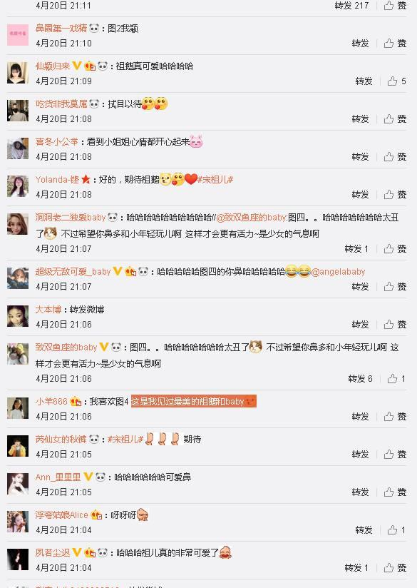 网友们也是期待她在跑男的表现纷纷在她的微博下面留言:这是我见过最美的祖鹅和baby。祖儿你的侧脸真的好看。期待你在跑男的表现!
