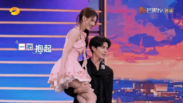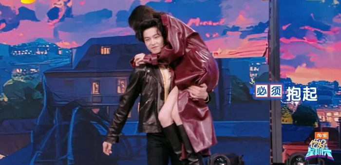 轮到毕雯珺跟张予曦的时候,毕雯珺展示了剧里经典动作,单手抱。