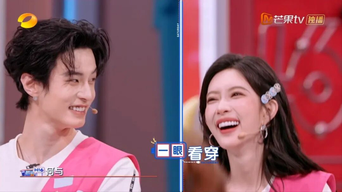 在举手抢答游戏的惩罚中,何与选择了2号位作为惩罚位,高瀚宇问他的时候,何与说,他会选择3号,但其实3号不是惩罚位,高瀚宇直接坐过去了,此时孟子义跟何与对视,她就懂了,两人之间的相视一笑,真的好甜。