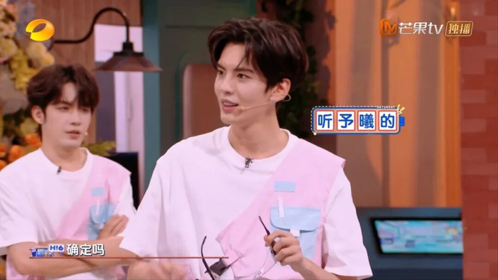 别说,两人的互动还挺甜,单眼皮的何与,还挺帅。