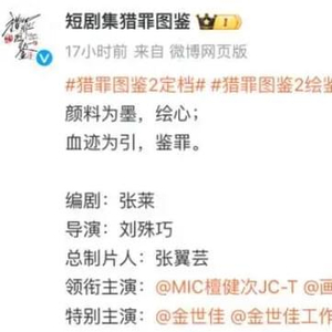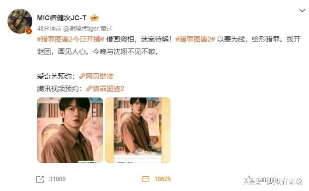 随后,檀健次发文:借画窥相,迷案待解!#猎罪图鉴2# 以墨为线,绘形猎罪。拨开谜团,画见人心。今晚与沈翊不见不散。
