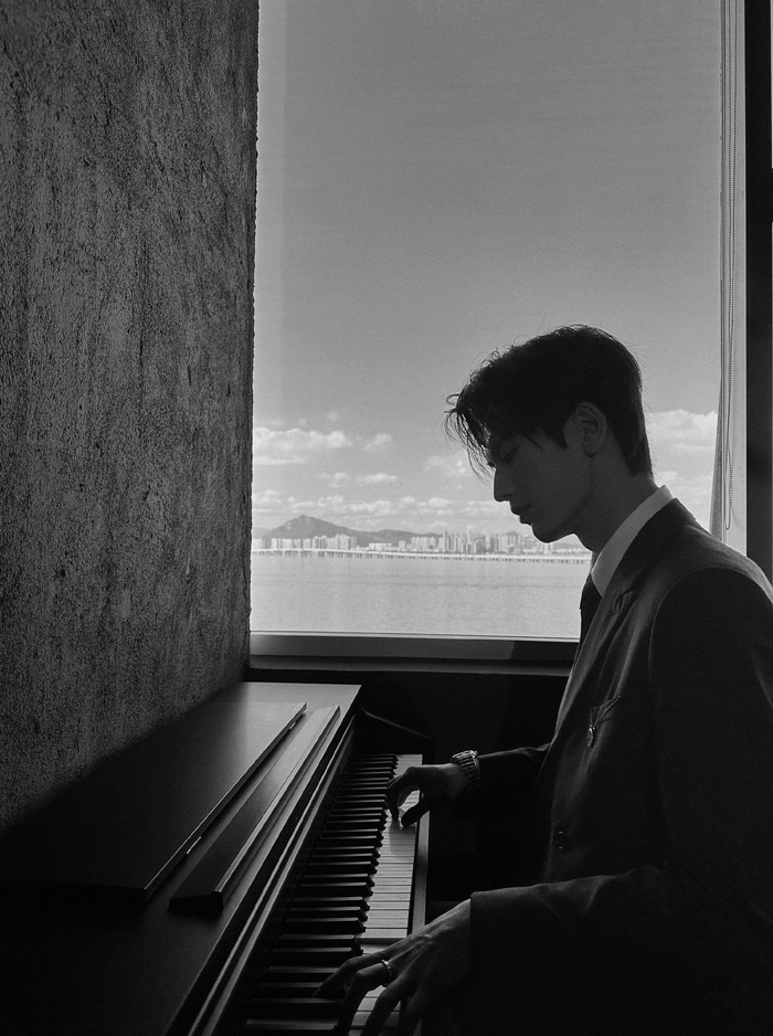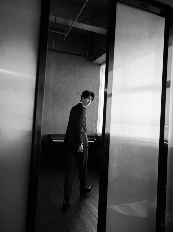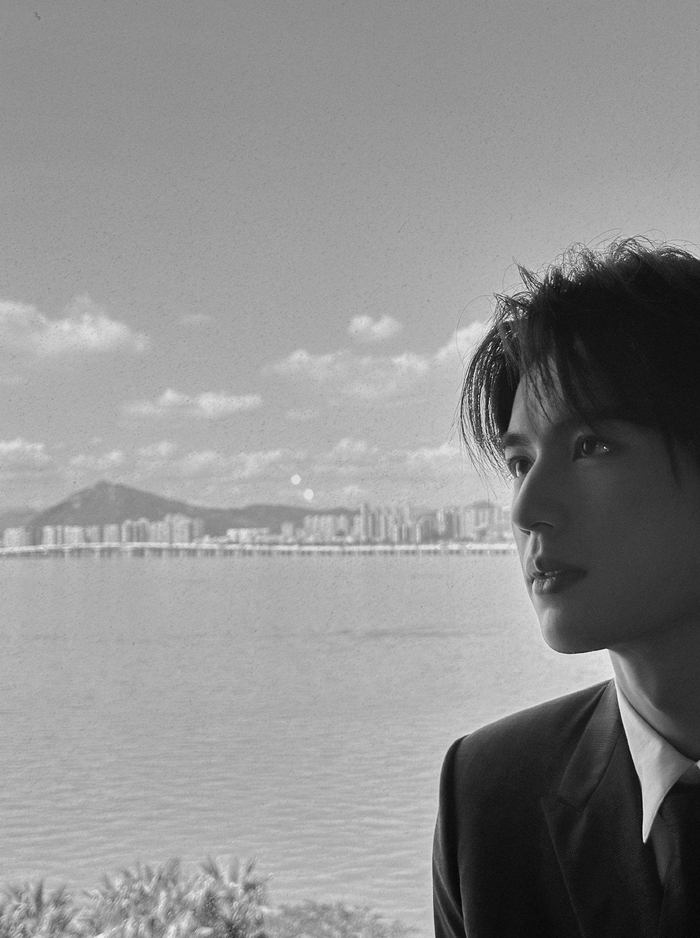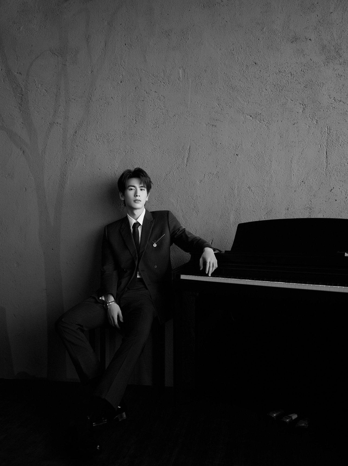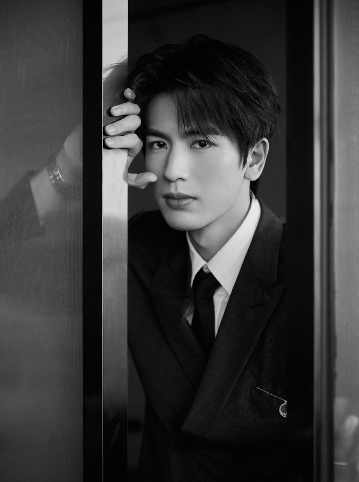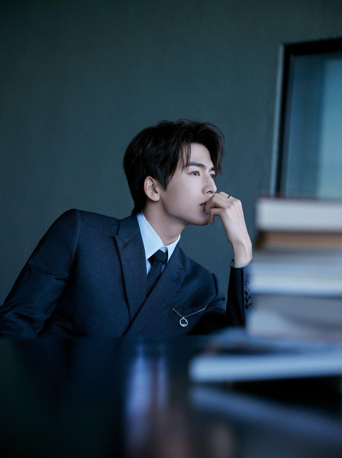 张凌赫身着深色西装,在静谧的空间中沉思,其雅致的气质和不言而喻的才华,再一次深深吸引了粉丝们的目光。