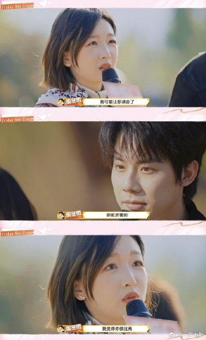 节目设定中,周奇与周冬雨的互动发生在“预制恋综”环节——王传君、杨迪作为总导演和编剧提供初始剧本,但鼓励嘉宾即兴发挥。两人在信物交换、轮滑搀扶、告白回应等关键节点均跳出原剧本,例如周冬雨被徐志胜“气走”后主动寻找周奇举杯,周奇的流泪亦非设计桥段。这种“半即兴”模式让观众在荒诞中捕捉到真实情感流动,形成“工业糖精外衣包裹真心”的独特观感。