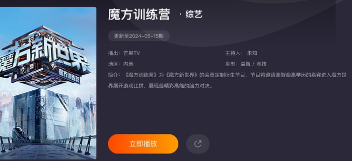 芒果全新推理综艺《魔方新世界》上线,蒲熠星、郭文韬、齐思钧、石凯等“院人”不再以“内测团”的形式出现,而是正式成为节目嘉宾;同期,衍生综艺《魔方训练营》引入了新一批“高智商高学历”的素人嘉宾进行游戏比拼。