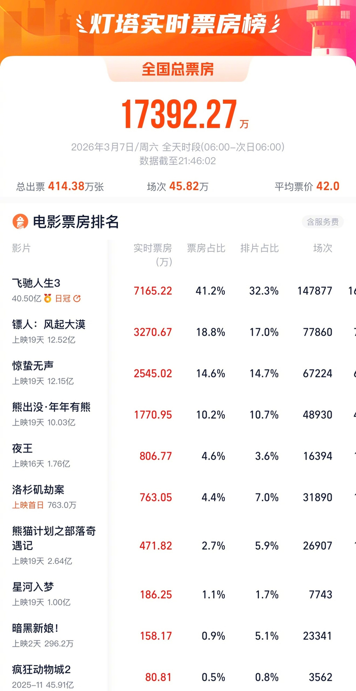 《飞驰人生3》票房破40亿,《星河入梦》仅1亿