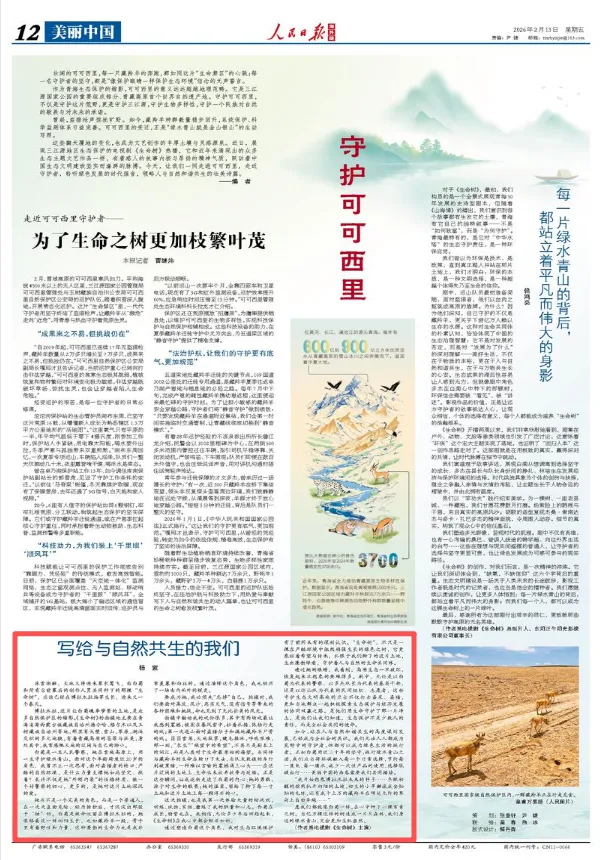 演员杨紫用精湛的演技完美诠释了一位在环保工作中铿锵有力的女性形象,2月13日,作为剧中主角白菊的扮演者,杨紫在《人民日报》发表文章,《写给与自然共生的我们》,字里行间满是对生态环境保护的感悟与呼吁。