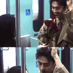 以“开往春天的地铁”为意象,在复古列车车厢内取景。两人通过十指紧扣、额头轻触、并肩静默等互动,配合摇晃光影与铁轨延伸元素,传递“未说破的心事与克制拉扯感”,被观众称为“内娱顶级性张力”的呈现。