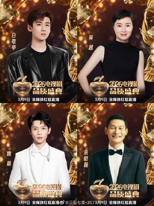 2026年电视剧品质盛典于今日(3月9日)璀璨启幕,官方最新公布的嘉宾阵容堪称“老中青三代顶配”,既有国民级实力演员坐镇,亦汇聚年度爆款剧集的新生代顶流,共同见证中国电视剧的品质荣光。