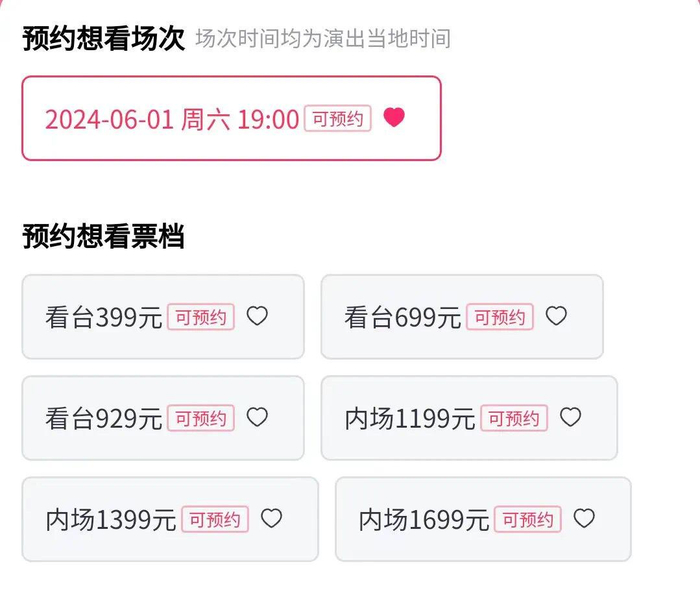 票价档位:399元、699元、929元、1199元、1399元、1699元