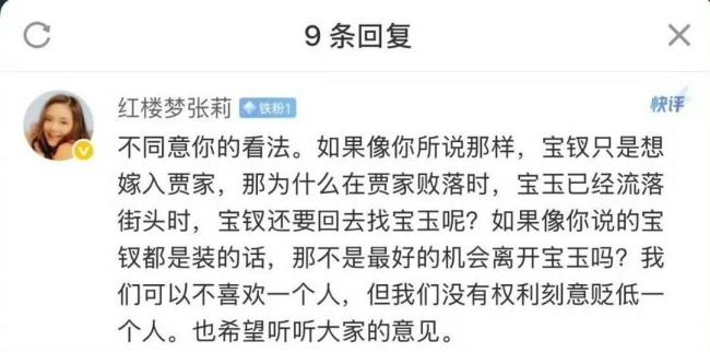 随后,同一部电视剧中薛宝钗的扮演者张莉公开反驳,明确表示不同意欧阳奋强的看法,并以关键情节发出灵魂拷问:若薛宝钗一心攀附贾府权势,为何在贾家彻底败落、宝玉流落街头之际,反而主动寻回宝玉?这本是摆脱“累赘”的最佳时机。张莉还强调解读角色需结合封建社会的时代桎梏,正视人物的复杂性,并指出“我们可以不喜欢一个人,但没权利故意贬低人家”。