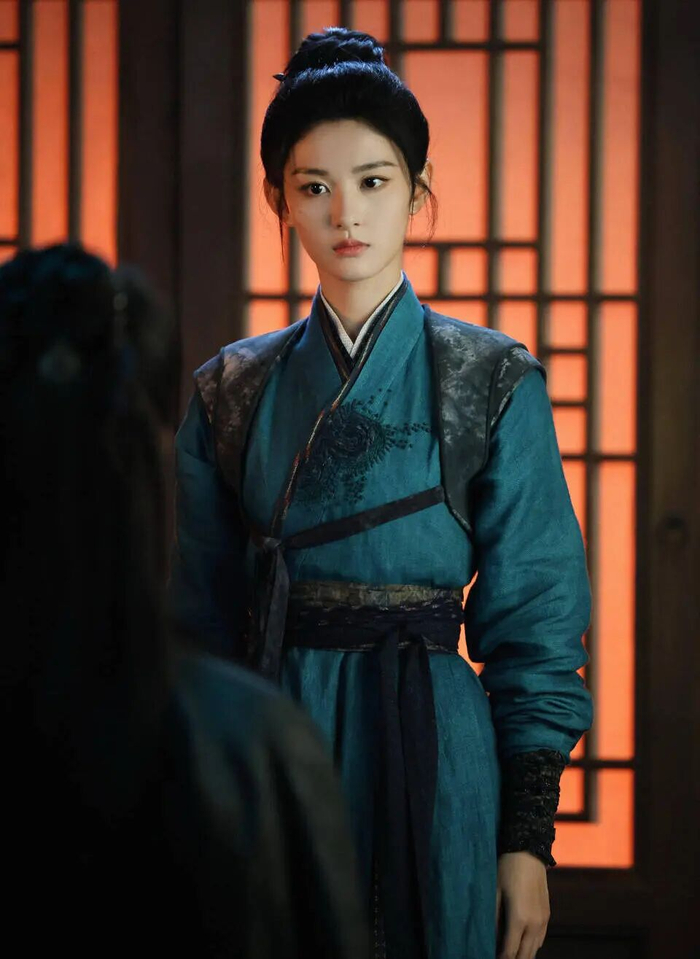 除了经典的女式盘发外,赵晴在剧中还有半披发的造型,只用最简约的簪子挽起来也英气十足。