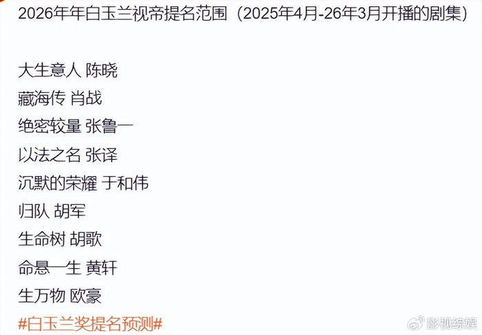 相比之下央视和东方卫视的电视剧品质盛典,也算是比较热门的评选,视帝视后有一定含金量,更是作为白玉兰的前哨,所以更被演员看重。