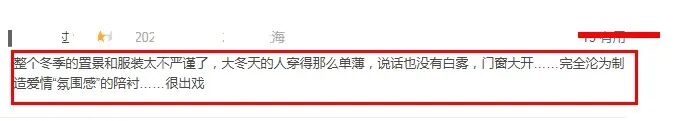 有观众吐槽:“雪花是假的,布景是假的,连人物的生活痕迹都是假的。”