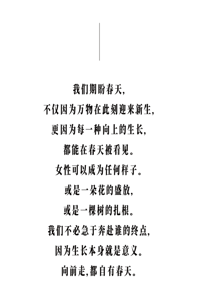 面对不断更迭的行业节奏,她并不着急往前赶。她只是用心演戏,静待属于自己的春天,“就像雨后的一株春笋,始终带着向上的生命力,等待破土的时刻。”春天,自会认得每一个慢慢向上生长的人。