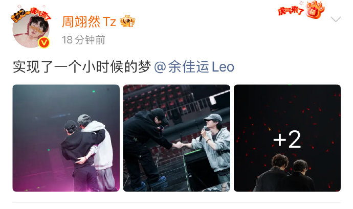 周翊然对余佳运的崇拜始于少年时期。据他本人在2025年余佳运宁波演唱会现场自述:“十五六岁时我就听于老师的歌”。彼时余佳运已是凭借《幸福三部曲》崭露头角的R&B音乐人,其作品《我想》《情话》等曾登顶音乐平台榜单。这种纯粹的音乐共鸣成为周翊然追梦的起点,他常在公开场合翻唱余佳运的作品,甚至在2026年巴黎的清晨唱响《了解》,以行动诠释“歌迷”身份。