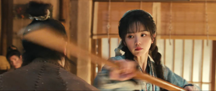 在零下环境中,她素颜完成90%高危打戏,包括棍战转场、双刀劈斩等高难度动作。为精准呈现市井武斗的粗粝感,她反复摔打练习雪地翻滚、重甲挥枪等场景,腿部淤青仍坚持实拍。武术指导评价其动作"行云流水兼具原始爆发力",棍法劈挑的凌厉姿态被观众称为"最萌的脸打最狠的架"。