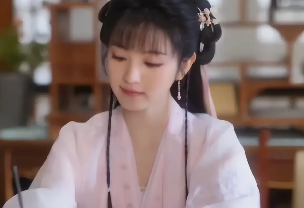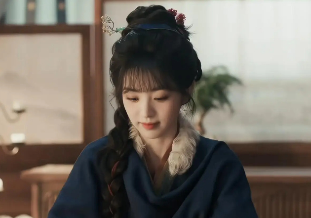 孔雪儿饰演的俞浅浅,穿一身绫罗绸缎,领口绣着精致暗纹,头发挽得利落大方,光洁的额头和清晰的下颌线一览无余。哪怕是慌慌张张用袖子擦嘴的小动作,眼神里也藏着股精明劲儿——那种江南女掌柜的从容大气,不用开口说话,就已经藏不住了。