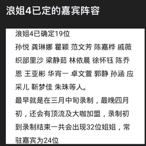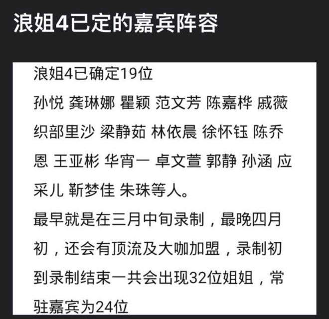 随着时间来到三月,距离芒果台近年爆火综艺节目《浪姐4》录制时间越来越近,最新网爆名单透露已经有19位嘉宾确定,多人首次出现,C位嘉宾将二选一。