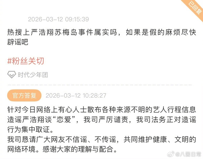 公司辟谣严浩翔恋情