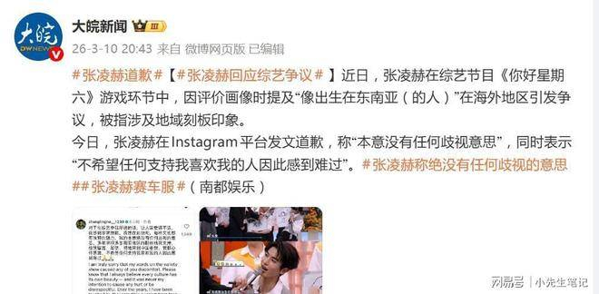张凌赫道歉,《你好星期六》删除张凌赫争议片段