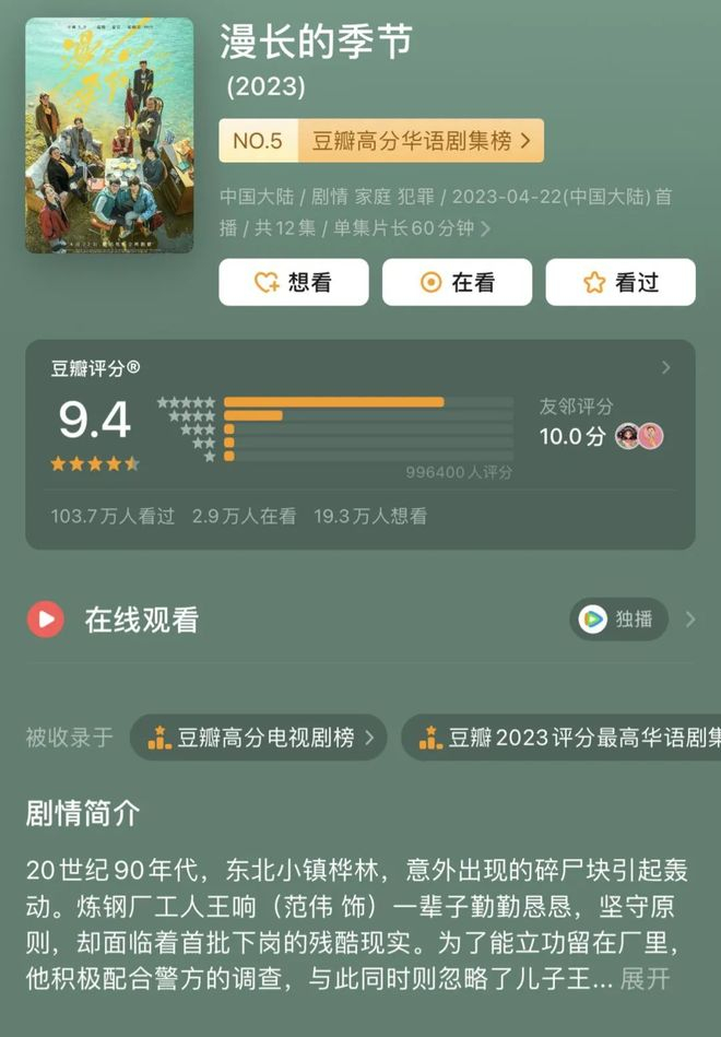 《漫长的季节》豆瓣评分