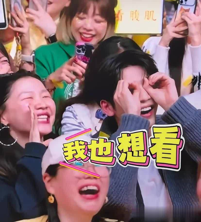 看热闹不嫌事大的金靖,也大喊着我也想看,哈哈哈,张凌赫在一旁做出放大镜的手势。看到这里,真的太搞笑了,这三个人怎么都这么有梗,果然金靖是个活宝,和她一起就乐子不断啊!