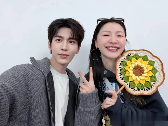 张凌赫穿着灰色的针织开衫,搭配白色上衣,简单的穿搭却清爽帅气,旁边的金靖穿着黑色卫衣,笑眯眯的,一看就是搞笑女。两人拿着手机,上面是给刘宇宁应援的文字,作为好友太给力了。