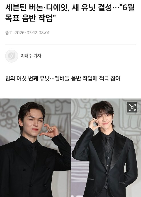 2026年3月12日,韩国多家媒体及歌谣界人士证实,人气男团SEVENTEEN成员Vernon(崔瀚率)与The8(徐明浩)将组成名为“率八”的小分队,计划于同年6月发行首张合作专辑,成为团体第六支官方小分队,引发全球歌迷热议。