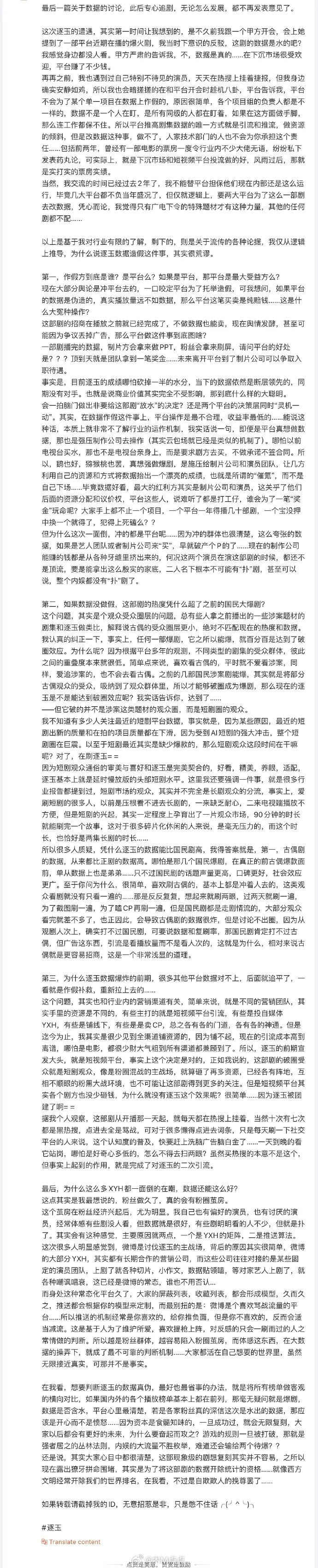 逐玉怎么做到的剧播到现在把狂飙、藏海传、骄阳似我、猎罪图鉴、庆余年、卿卿日常、赘婿剧粉都惹了… 业内发文解释为什么逐玉数据不可能造假