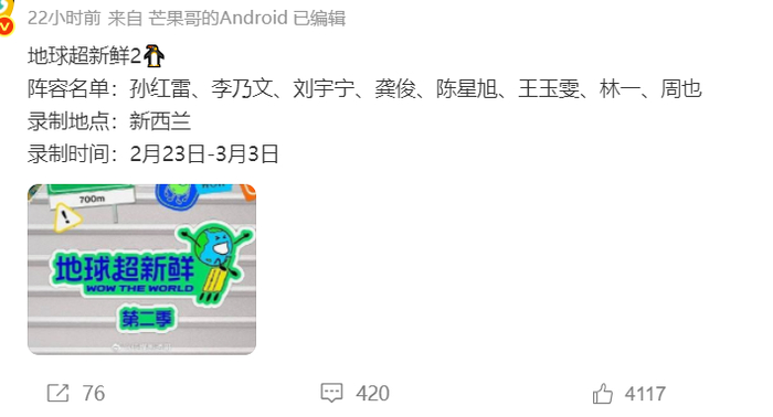《地球超新鲜2》将录制,搞笑担当竟退出,又加入两位新流量成员_新闻