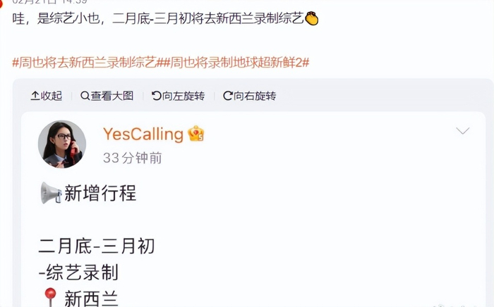 周也和王玉雯的性格有些相似,两人都是大大咧咧的姑娘。前不久,网上传出周也新增的行程,将参与综艺的录制,而录制地点就是新西兰,从这点上看,周也成为《地球超新鲜2》的常驻嘉宾。