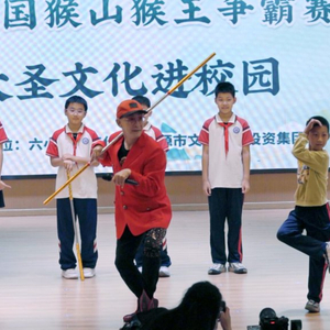 一次大圣文化进校园活动上,六小龄童与学生交流。