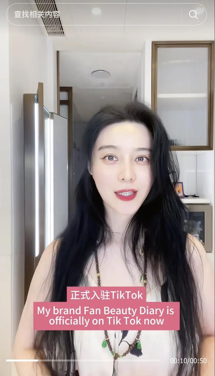 緊接着,范冰冰同年6月高調宣佈Fan Beauty入駐TikTok,第一條視頻播放量高達67萬。不過後續,范冰冰微出鏡的視頻播放量則低到幾千甚至幾百。