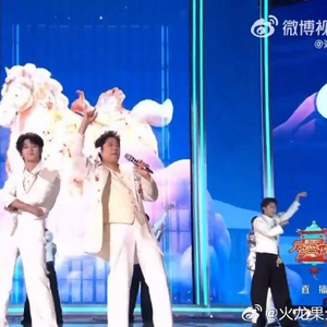 39岁的年龄差被转化为舞台亮点:击掌、拍肩、错位站立等走位设计,被观众调侃为“长辈宠自家孩子”。结尾处穆祉丞模仿白龙马腾跃的ending pose与蔡国庆即兴配合的“师徒击掌”,将欢乐推向高潮,网友戏称“蔡老师拍肩像过年发红包”。