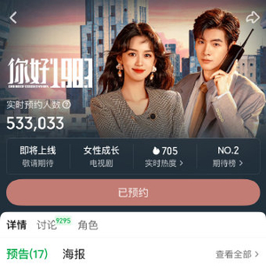 预约热度:截至3月10日,爱奇艺站内预约量突破50万,角色热度榜目标开播前达1500万。