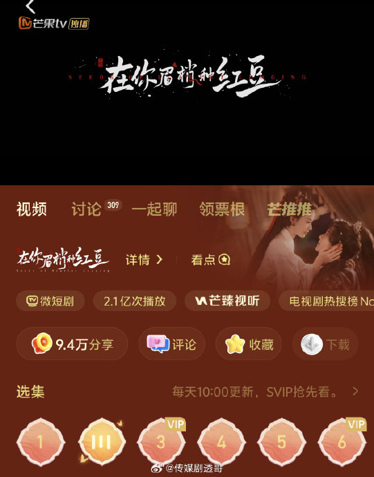 截至收官,《在你眉梢种红豆》以7亿播放量写下微短剧市场的里程碑。它既印证了“精品化”短剧的爆发潜力,也暴露了叙事完整性的行业短板。但无可否认,郑业成与团队用“沈谬的色彩”,为寒冬中的影视行业点亮了一颗破局红豆。