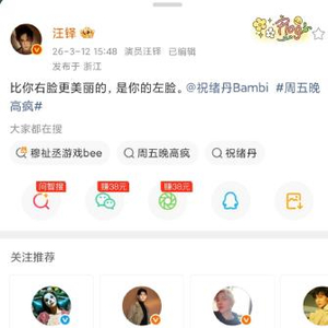 更值得玩味的是,此次"模仿事件"发生前,两人已被多次传出将共同主演古装IP剧《将门毒后》——汪铎被书粉力赞其"破碎感与力量感并存"的特质完美契合男主谢景行,祝绪丹的清冷气质则被看好能驾驭"黑莲花嫡女"沈妙。尽管选角尚未官宣,但网传的高适配度侧面印证了市场对二人荧幕化学反应的期待。这种潜在的专业合作背景,反而为综艺互动增添了"预热搭档默契"的解读空间。