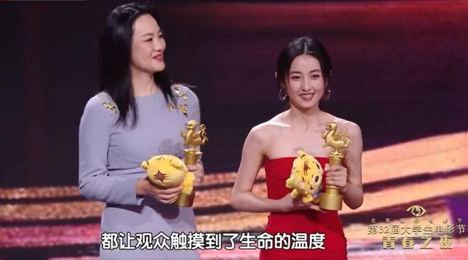 最受大学生欢迎年度女演员荣誉由咏梅和张子枫共同获得。咏梅表达了对于“最受大学生欢迎年度女演员”这一荣誉称号的珍视,希望自己能够通过作品和表演一直获得大学生的喜爱,并期待与更多年轻的创作者们合作。张子枫感谢了大学生电影节对自己的认可,感谢了导演李玉、监制方励和搭档张伟丽,也感谢了片中角色林沫沫的坚守和勇敢。