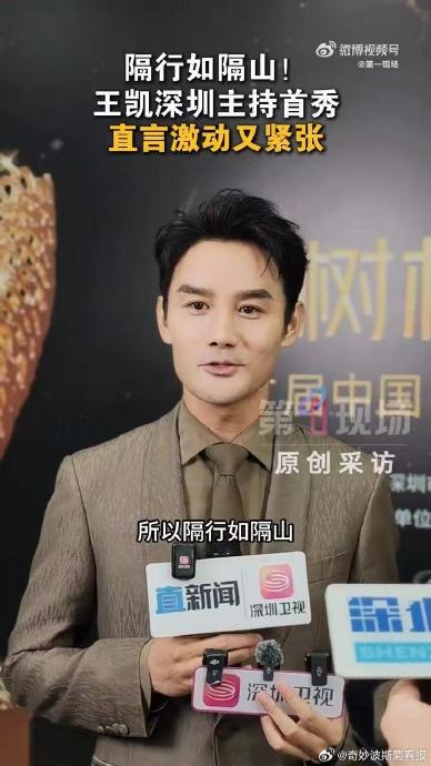 尽管是主持界“新人”,王凯毫不掩饰登台前的忐忑。他在红毯采访中直言首次主持金树林盛典“很紧张”,微博词条#王凯凡尔赛式紧张#更引发热议——观众发现他嘴上说着紧张,实际表现却从容大方。这种真诚与实力的反差,恰恰成为亮点:他既以演员身份共情幕后工作者的不易,又以谦逊姿态拉近与观众的距离。深圳卫视镜头捕捉到他暖心鼓励行业新人:“别怕慢,别怕难,别急着否定自己”,这句寄语被赞为盛典最具温度的瞬间。