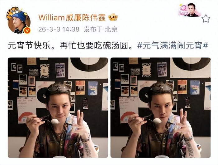 节日当天,陈伟霆不仅发文表白,更被曝光边工作边享用汤圆的画面。视频中他素颜出镜,毫无偶像包袱,手持汤圆自然食用,随性状态却意外展露出对传统节庆仪式感的专注。这份专注与其长期自律的戒糖习惯形成强烈反差,黑芝麻馅料的清甜,成了他严格饮食管理中难得的 " 节日限定放纵 ",让这碗朴素的汤圆更显珍贵。